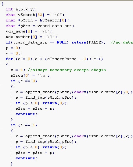 Dies ist ein Auzug aus einem C und C++ Projekt zum Uebertragen von VCards zu einem Telefon oder auf einen PC.